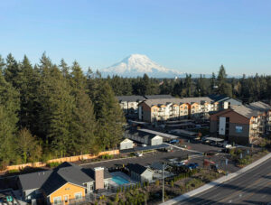 Wellstone at Bridgeport consists of 208 units over four buildings on seven total acres. The units include studios, open one-bedroom, and one- and two-bedroom residences, along with 281 parking spots, of which 23 are detached garages. Each garden-style unit comes with high-end interior finishes, and 128 units feature large, covered balconies.